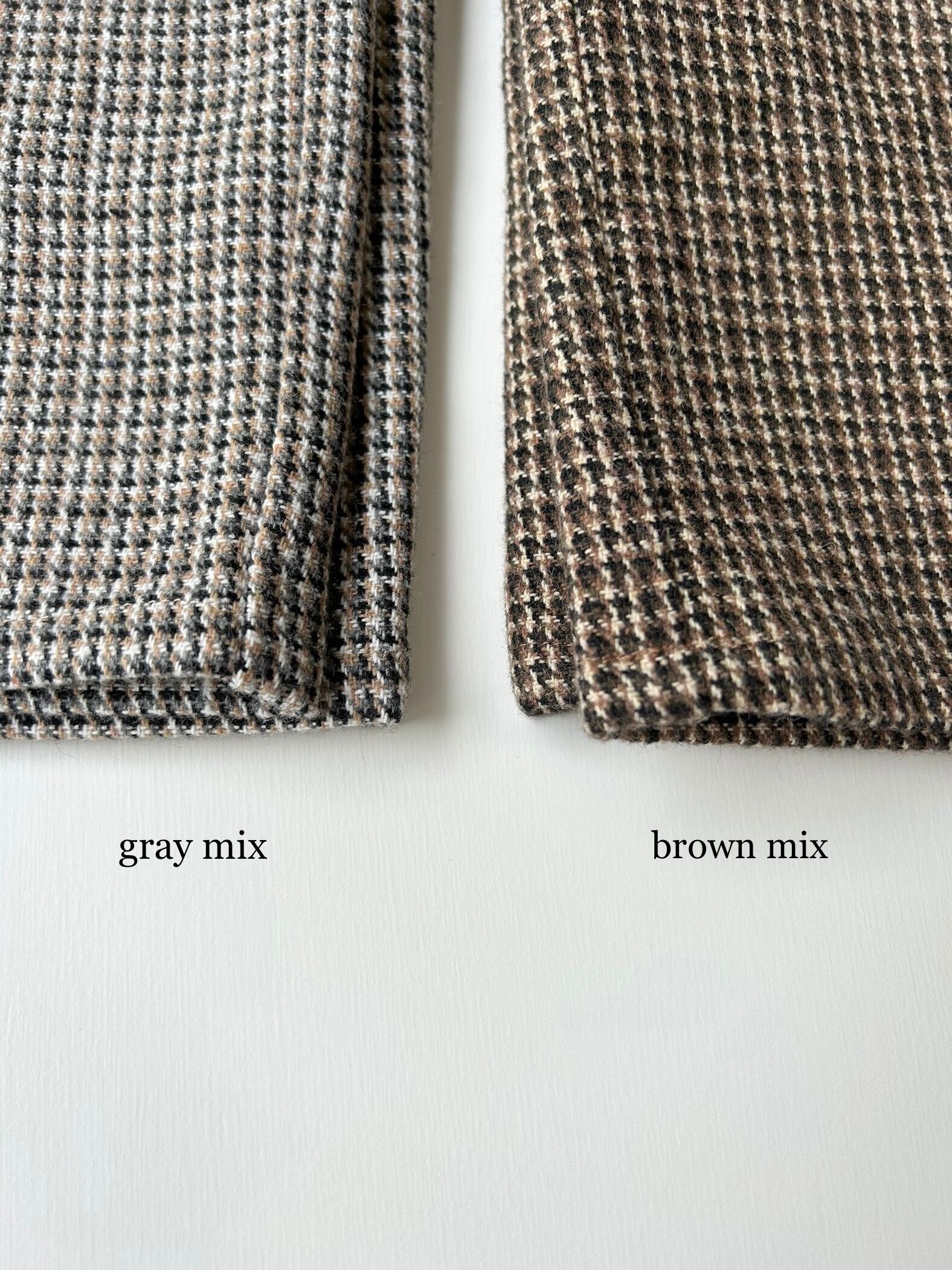 ※ツイード生地が熱に弱いためアイロンは低温で様子を見ながらでお願いします。